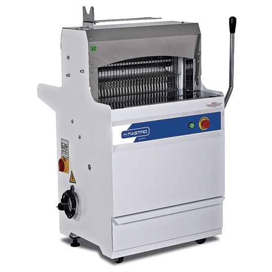 Questa macchina è progettata per i piccoli panifici. È una macchina facile da usare, mettere il pane nella macchina e tirare la maniglia. Il piano espositivo è realizzato in acciaio inox per soddisfare i requisiti sanitari. La macchina standard viene fornita predisposta per taglio da 10 mm. Come funziona: il pane va messo sul piano, si tira la maniglia e il pane è tagliato. La maniglia deve tornare lentamente al punto di partenza, pane è quindi tagliato