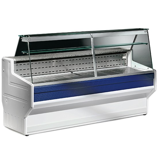 Banchi refrigerati ideali per la presentazione e la vendita di salumi, formaggi, latticini, piatti pronti, ecc. Realizzati in lamiera zincata plastificata, superficie espositiva in acciaio inox AISI 304 e piano di lavoro in granito.Isolamento in poliuretano espanso iniettato, laterali in ABS termoformato. Vano refrigerato chiuso con portine e dotato di evaporatore separato. Disponibile con rivestimento frontale in vari colori a scelta. Piedini in inox regolabili in altezza.